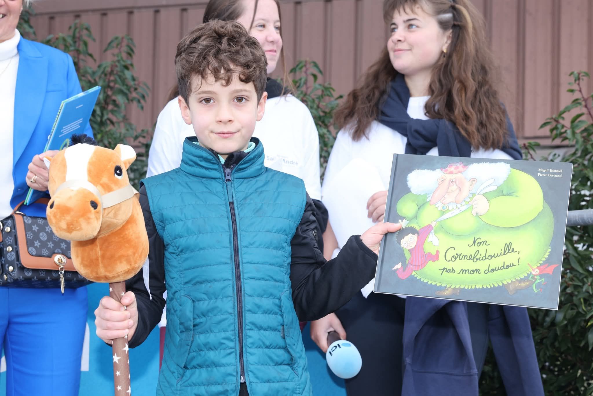 Certains enfants ont gagné un livre grâce à leur performance sur le parcours hobby horsing et une famille a gagné une séance photos dans le studio de la photographe Marlène Truchet qui se trouve à Montrond-les-bains. Merci à elle pour ce cadeau qui a été attribué par tirage au sort d’une tombola.